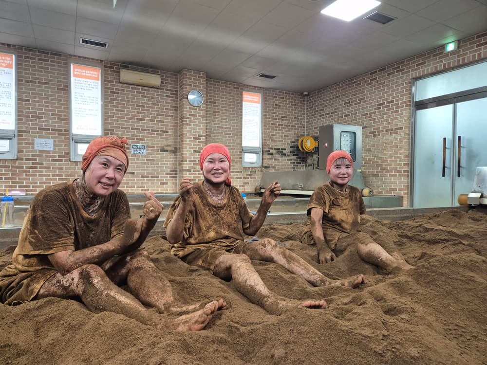 쌀겨효소 첫 도전 쌀겨를 덮고있을때 답답하고 숨이 안쉬어져서 15분 조금남겨놓고 일어났다 바닥은 따뜻하고 뒹굴거리니 너무좋았어요 찜질후 샤워하고나니 얼굴에서 광택이 나고 몸미 어찌나 개운하든지 한달에 한번은 꼭오자는 먁속을햇어요