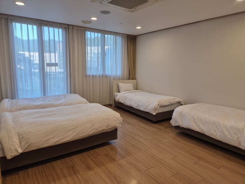 알찬 무주여행 시작합니다ㅎㅎ 태권도원 체크인전에 와인동굴,반디랜드 다녀왔어요 와인동굴은 진짜 시원해서 여름 무주여행 필수 코스입니다!! 반디랜드 곤충박물관 볼게 정말 많고 잘되어 있어서 깜짝 놀랐어요 어른 인이 모두 대만족!! 뜨겁지만 신나게 썰매 타주고 천체박물관 들려서 야간관측예약했는데 이날 하늘이 좋아서 다행이 취소안되고 관측했습니다. 처음으로 달,별자리를 관측해보았어요 2천원에 이런 귀한경험할 수 있다니!! 무주 여행계획이신 분들 여긴 꼭 가보세요!! 태권도원은 침대 온돌이 있는데 우린 침대로 픽!! 4인실에 싱글침대가 4개있고 샤워실 화장실 따로있어 편했고 샴푸 린스 바디워시 수건 완비 냉장고 티비까지 완벽 저희 방 옆에는 세탁실도 있어서 거기서 빨래도 가능!! 각층마다 정수기 전자랜지 있고 태권도원내 편의점도 있어서 나가지 않고 태권도원 안에서 모두 해결가능했어요 침대는 시몬스라 꿀잠자고 주말 상설공연을 오전9:30분부터 배부하시는데 태권도원 숙박으로 여유있게 티켓팅 성공!! 퇴실 후 공연보고 모노레일(전북투어패스로 무료탑승) 타고 탁트인 전망보니 더위가 싹 가시더라구요ㅎㅎ 동선이며 시설이며 완벽했던 무주여행이였습니다!! 아이 어른 모두 만족 만족 대만족ㅎㅎ