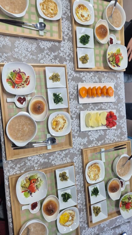 오랜친구들과 함께 찾은 정가네~ 친구들 모두 너무 만족스러웠던 여행이었습니다 친절하신 호스트님, 길찾기 어렵다고 직접마중나와주시고 저녁식사, 아침식사 모두 정갈하고 예쁘고, 맛있게 준비해주시고, 족욕은 심신이 따뜻해질정도 좋았습니다 양갱만들기 체험도 처음해보는거라 다들 재밌어 하고 만들, 집에 가지고 갈수 있게 포장까지 해주셔서 만족도 최상 이었습니다 저녁에 눈이 내려서 눈사람도 만들고, 고구마도 구워주셔서 정말 행복한 여행이었습니다 꼭 다시 가고싶어요~